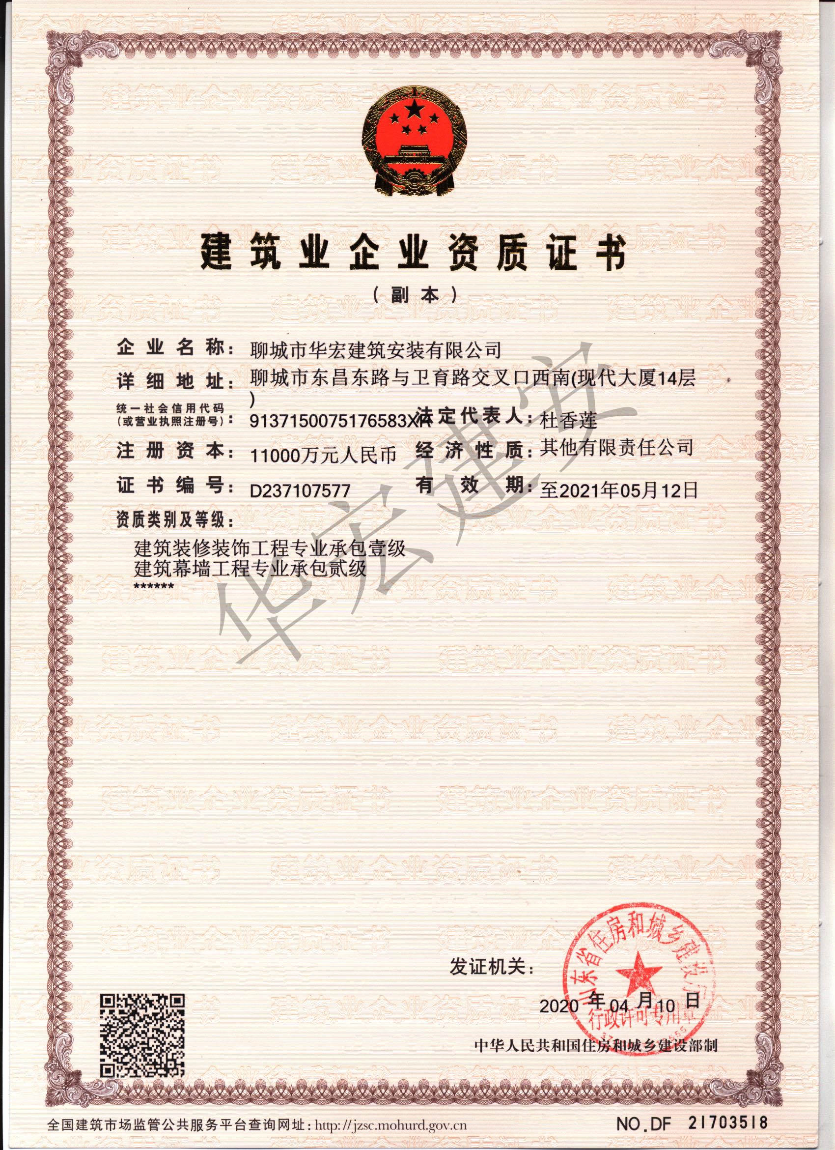 聊城市華宏建筑安裝有限公司成立于2002年5月,公司自2002年成立以來(lái),不斷發(fā)揚(yáng) “敬業(yè)修身 打造精品 開(kāi)拓創(chuàng)新 弄潮勇進(jìn)”的創(chuàng)業(yè)精神,始終遵循“以質(zhì)量求生存、靠精品創(chuàng)品牌、憑信譽(yù)贏市場(chǎng)”的宗旨,認(rèn)真奉行“科學(xué) 高效 一流”的質(zhì)量方針